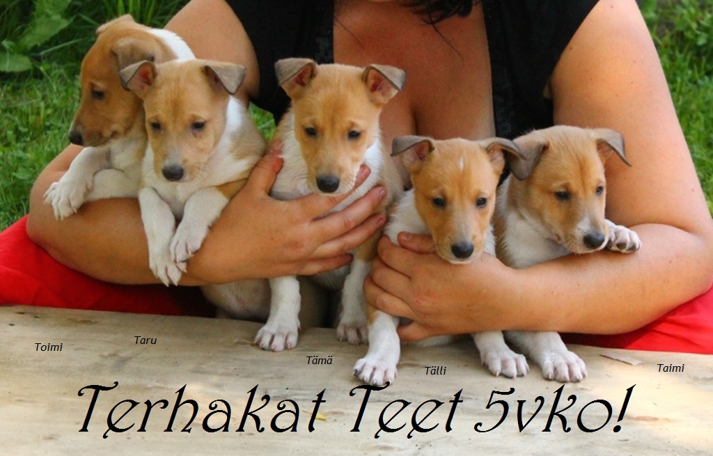 Pennut ovat todella tasaisen oloista sakkia. Niillä on jokaisella oma ilmeensä, mutta loppujen lopuksi MEKIN sekoitamme niitä toisiinsa usein, joten ovat hyvin samantyyppisiä. Ne ovat myös suhteellisen hiljaisia, äänekkäimpiä ovat Toimi ja Taru, jotka haukkuvat oikeastaan hetken vain silloin kun haluavat ulos pukuhuoneesta, jossa nukkuvat koko yön. Ne eivät kuitenkaan käytä ääntään muulloin, joten mitään kovin herkkähaukkuisia niistä tuskin tulee. Pennut ovat kaikki terhakoita menijöitä, tutustuvat innolla vieraisiin paikkoihin ja tulevat innolla suoraan syliin kun niitä kutsuu. Ne repivät leluja ja telmivät vinhasti keskenään.