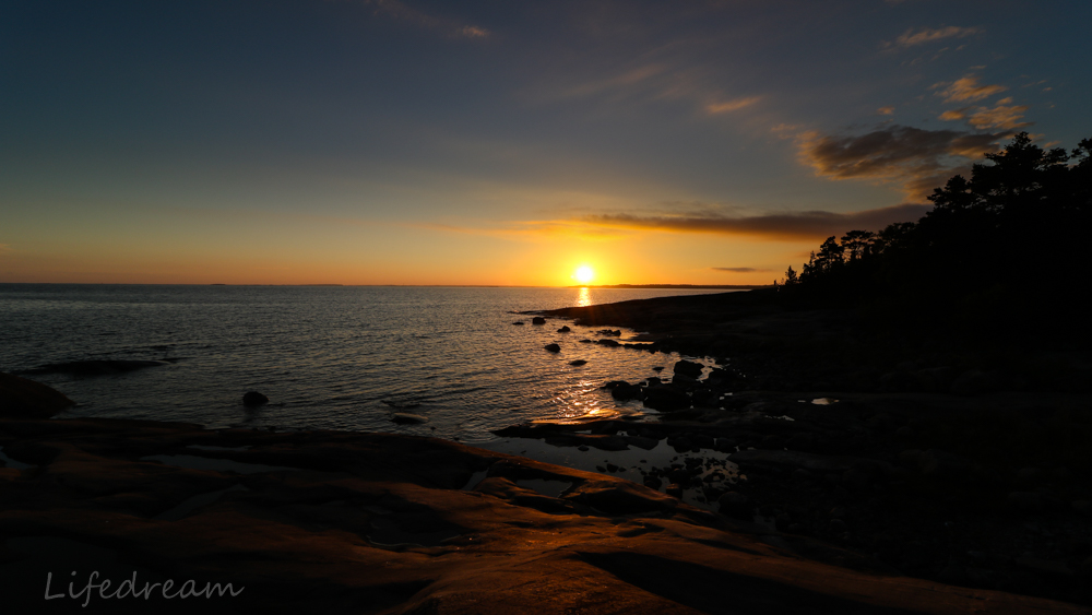 Aluksi oli tarkoitus lähteä yksin, mutta sattumalta Reakin innostui telttaretkestä ja viime hetkillä myös uusi kiikkututtavuus Mikko lähti mukaan. Ajomatka niemen kärkeen oli aika pitkä ja koska olin muutenkin myöhässä (aaargh miten kaikki voi mennä pieleen aina silloin kun on kiire muutenkin?) olimme paikan päällä vasta yhdeksältä. Valitsimme leiripaikaksi Nedergårdin leirintäpaikan, sillä se sijaitsi aivan niemen kärjessä ja lähellä merta. Parin kilometrin kävely parkkipaikalta rannalle oli helppokulkuista. Perillä oli useampi telttapaikka, laavu ja nuotiopaikka. Paikalla oli kymmenkunta ihmistä ja koiriakin. Mikko jo odotti rantakallioilla ja yhdessä etsimme tyhjän tulisijan ja kokosimme teltat. Samalla kun sytyttelimme nuotiota minä valokuvasin upeaa auringonlaskua ja nuotiota.
