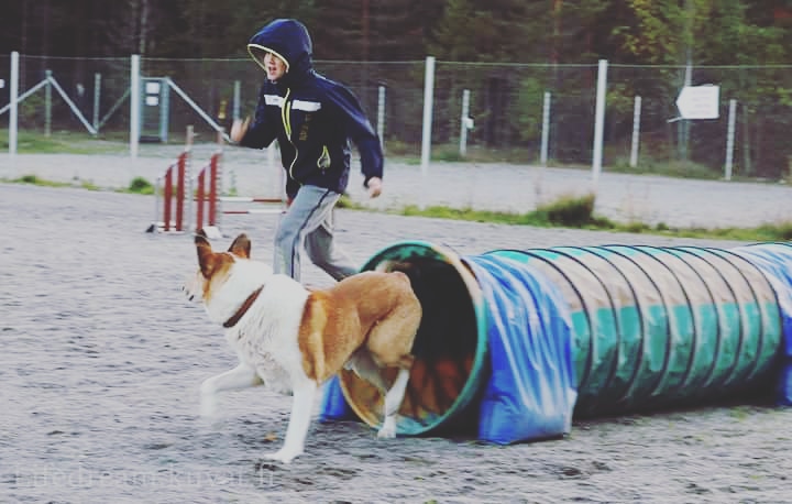 asenne on muuttunut siinä määrin, että se on vaikuttanut omaan innostukseen lajia kohtaan. Juggis on vasta reilu 4v joten sen kanssa ehdin käydä vielä kursseilla ja kisaamassakin monta vuotta. Jukan painonpudotus on auttanut sitä vauhdissa ja myös kehonhallintatreenit jumppapallolla ovat selkeästi auttaneet. Tällä hetkellä yritän saasa Jukalle enemmän lihasta syöttämälle sille paljon lihaa ja kalaöljyjä. Pitkissä treeneissä Jukka edelleen väsyy, mutta muuten on ollut ihana nähdä sen muutos pulskasta sohvaperunasta kiitäväksi agsakoiraksi! Ihan superia 😀 ❤