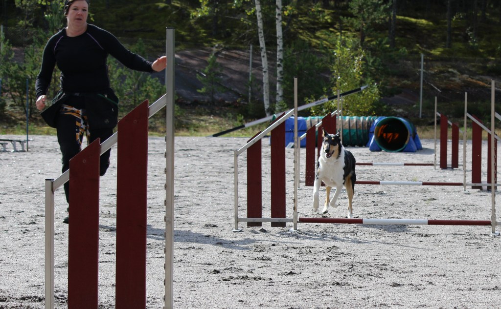Pidin siitä, että Tiina tarjosi Piikulle myös toisen vaihtoehdon hypylle ja koiran piti todella oppia lukemaan minua ja kuuntelemaan miten ohjasin sitä niin fyysisesti kuin verbaalisestikin. Tarkoituksena ei ollutkaan opetella rataa ja tehdä sitä mahdollisimman pitkään, vaan enemmänkin keskittyä näihin muutamaan juttuun. Uskon, että tätä kautta Piikulle kehittyy hyvä kyky lukea minua ja ohjausta ja se myös vahvistaa suhdettamme.