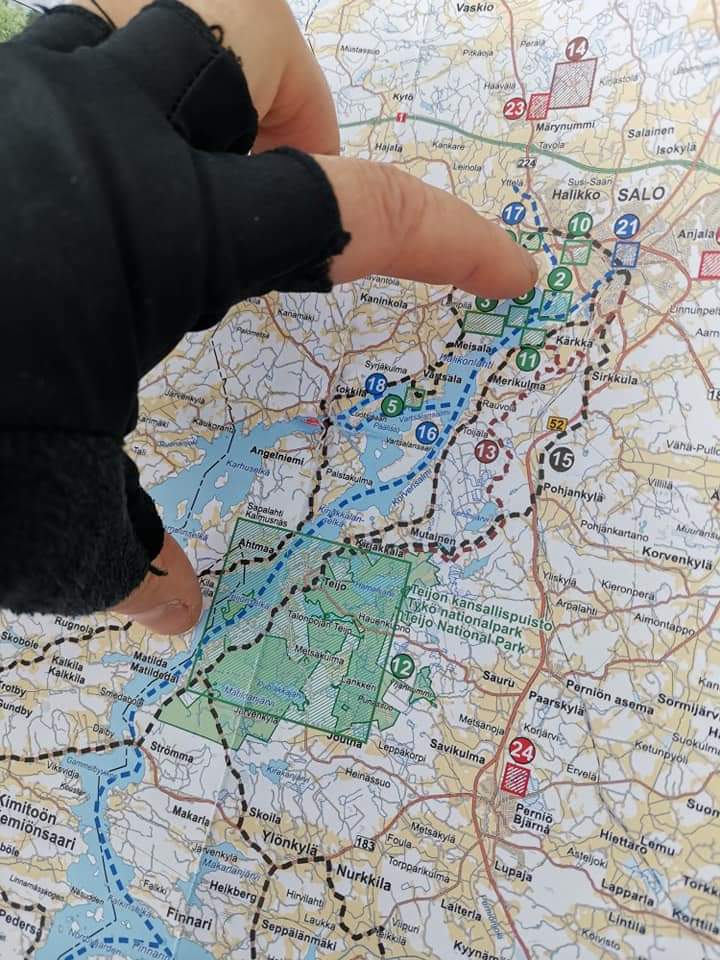 Lähdimme kiertämään Isoholman retkipolkua, jonka Noora löysi maastokartasta. Alku olikin selkeä ja helposti seurattava, puissa oli valkoisia merkkejä polun varrella. Mutta sitten äkkiä polun täyttivät kaatuneet puunrungot ja hävitimme reitin. Taistelimme puhelimen navigaattorin kanssa keskellä aika hankalakulkuista maastoa. Nauroimme, että ei se melominen, mutta tämä!!