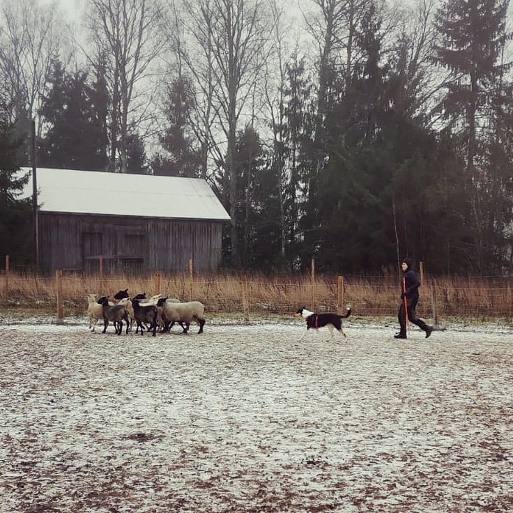 12.12 Piikun kanssa paimenessa tänään pitkästä aikaa. Tauko oli taas tehnyt tehtävänsä ja Piiku tuntui olevan ihan ulalla mitä lampaiden kanssa pitikään tehdä. Pyörössä taas kuljettiin ympyrää, mutta joitakin hetkellisiä välähdyksiä lukuunottamatta Piiku ei tuntunut oikein ymmärtävän mitä siltä haetaan. Mervi tosin luo uskoa minuun, että Piikusta vielä tulisi jotain. Paimennus muistuttaa tällä hetkellä kuitenkin niin paljon vanhempien koirieni kanssa tehtyä ”paimennusta”, jossa vuosikausia pyörittiin ympyrää ilman, että homma koskaan eteni yhtään mihinkään, että mielialani on vähän maassa. Tämä oli tämän vuoden viimeinen kerta lampailla, joten katsotaan sitten uudelleen ensi keväänä. Kiitos Merville kivoista treeneistä!