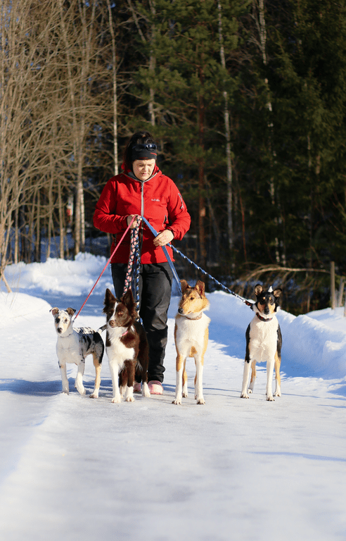 Olemme myös samasta syystä tavanneet paljon kavereita. Pimun kavereita on veli Elmo, kelpien pentu Räksy ja BC pentu Colt. Lotan kavereita puolestaan on mm. saman ikäiset Saaga ja Diego sekä pitkäkarvaiset colliet Poju sekä Viima. Likka ja Piiku viihtyvät jätkäporukassa: heidän kavereitaan on husky pojat Elmo sekä Gaston ja Maijun pojat Unto, Vipu ja Ventti. On hauskaa päästä painelemaan kavereiden kanssa täysiä ja samalla olen niin onnellinen, että suurimmaksi osaksi tytöt tulevat kaikkien kanssa toimeen.