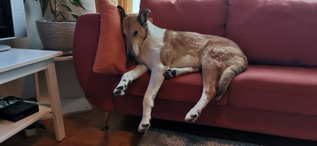 Tämä teksti on ollut luonnoslaatikossa jo useamman vuoden. Oikeastaan sen jälkeen kun päätin päästää urokseni Jukan ikiuneen lokakuussa 2020, koiran kroonisen kivun arviointi ja sivusta kokeminen on ollut sydäntä lähellä. Tekstin kirjoittaminen ja Jukan käytöksen muisteleminen on edelleen kova paikka. Kaikille meille on tärkeää koiramme kivuton olotila. Se, kokeeko se kipua ja millaista se on, ei ole kuitenkaan yksiselitteistä. Ontuva koira on helppo kategorioida, mutta kroonisen kivun tunnusmerkkiä on hiljakseen ilmentyvä, jopa meidän ihmisten mielestä koiran persoonallisuudeksi muuttuva käytös. Koira peittää kipuaan hyvin, joten ne voivat oireilla monin eri tavoin. Varsinkin vanhojen koirien kanssa näen paljon kipumerkkejä, joihin omistajat eivät mielestäni tarpeeksi ajoissa puutu. Ajatellaan, että koira on ”vain” vanha, ja vanhuuteen kuuluu kipua. Kuuluuko? Jokaisen koiran omistajan vastuulle kuuluu tarkkailla koiraansa ja viedä se tarvittaessa eläinlääkäriin saamaan apua.