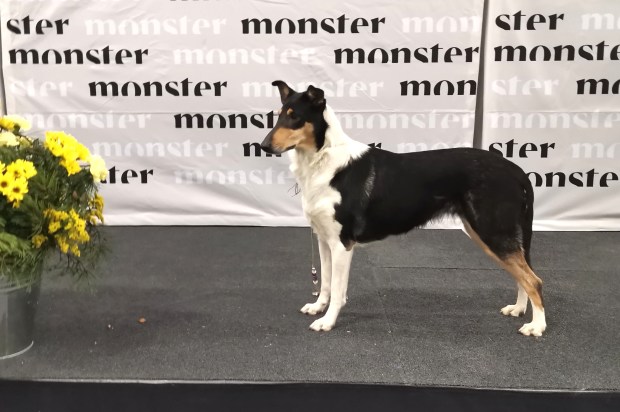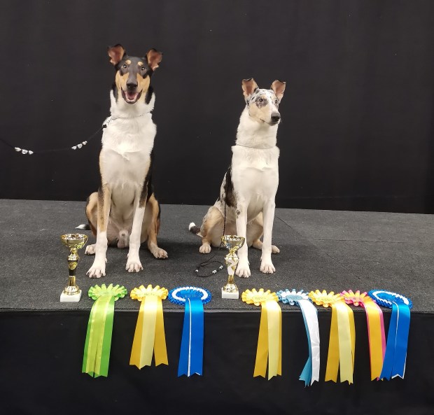 Good size, elegant and very well-balanced. Very good head shape for age, good ears, needs stronger and wider underjaw, excellent neck, strong topline, very good body for age, still needs to develop in forechest, excellent bone, strong feet, very good hind angulation, a little straight in front, excellent side movement, parallel behind, quite good in front, excellent condition, good colour and temperament. JUN ROP, VARA-SERT, JUN-SERT