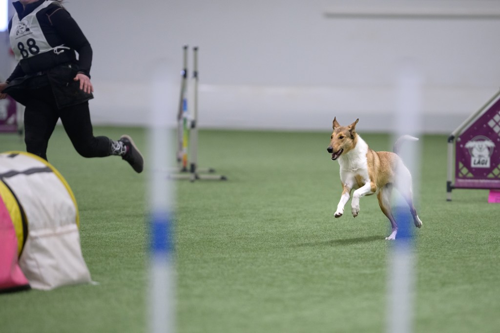 Lotta jatkoi agilityuraansa pitkäperjataina Liedossa TSAUn kisoissa. Kyllä se on hauska pieni kaunokki. Kisapaikalla kulkee nätisti vierellä ja hakee kontaktia. Reipas se on, mutta ei lainkaan niin vahvasti oma itsensä kuin yleensä. Vähän kaipaisin sille lisää vauhtia ja asennetta touhuun, mutta sitä tulee varmasti lisää kokemuksen kautta. Oma jännitys oli pienempi kuin ekoissa kisoissa viime sunnuntaina, mutta tarpeeksi kuitenkin, jotta tuntui perhoset mahassa.