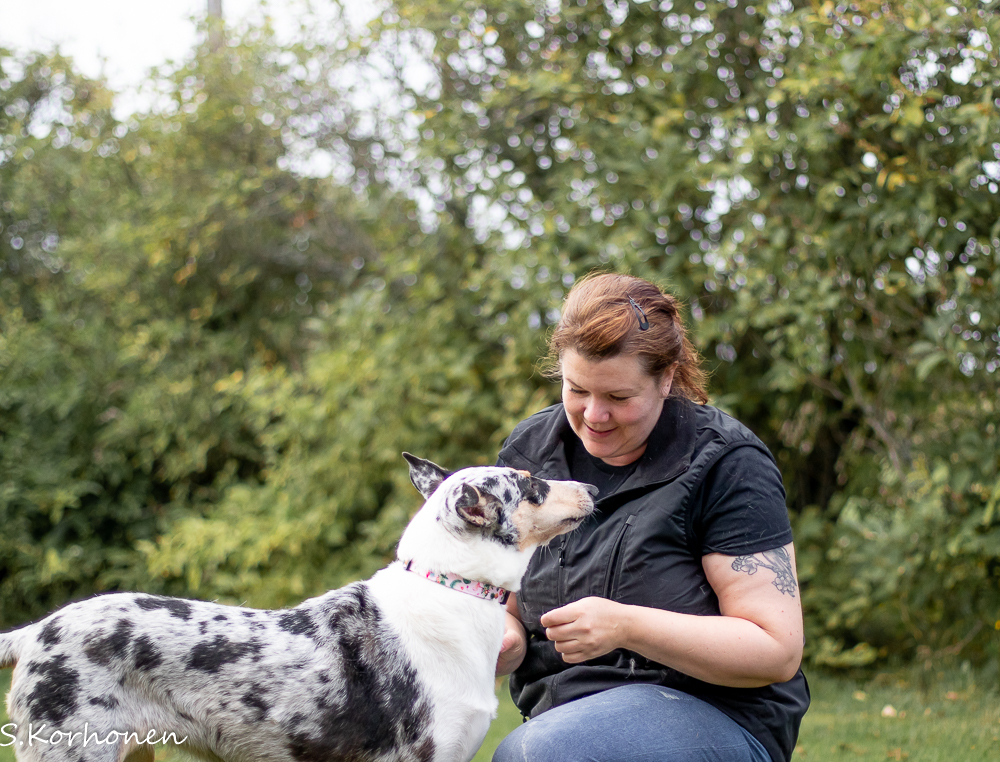 Lottakin sai tuloksen, mistä olin erittäin iloinen! Suorituksemme oli vauhdikas ja sain useaan kertaan kehoittaa sitä keskittymään minuun. Vapaana seuruu sujui kuitenkin paremmin kuin pelkäsin. Houkutuksen kohdalla se ei kyennyt vastustamaan ihanaa tossua, joten sitä piti nuuskia ja sitten napata suuhun. Onneksi se jätti sen siihen, eikä alkanut kannella sitä koko loppurataa![]()