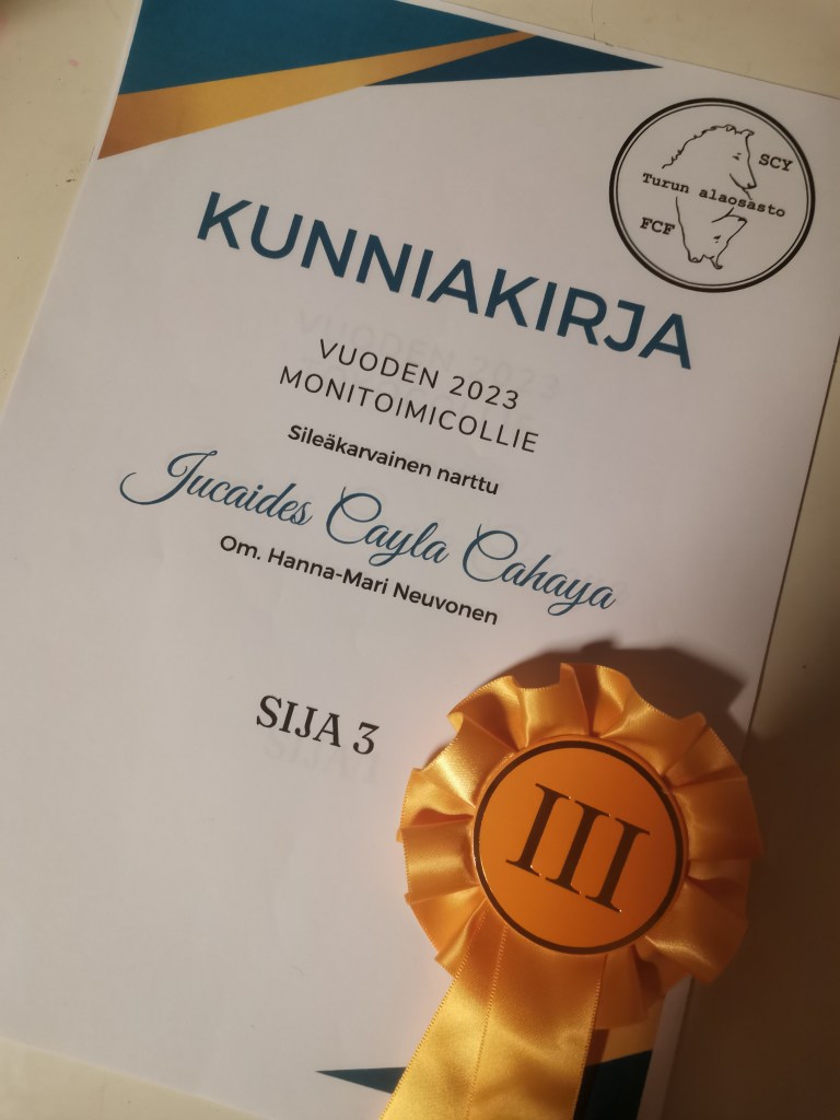 Vuoden 2023 näyttely collie nartut, 3.sija