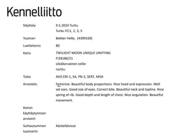 Eilen Lotasta tuli Suomen muotovalio!!! Upeasti vuoden ekassa näyttelyssä ja viimeisen sertin jahdissa AVO ERI1 SA PN2 SERT JA FI MVA!!!! ![]()