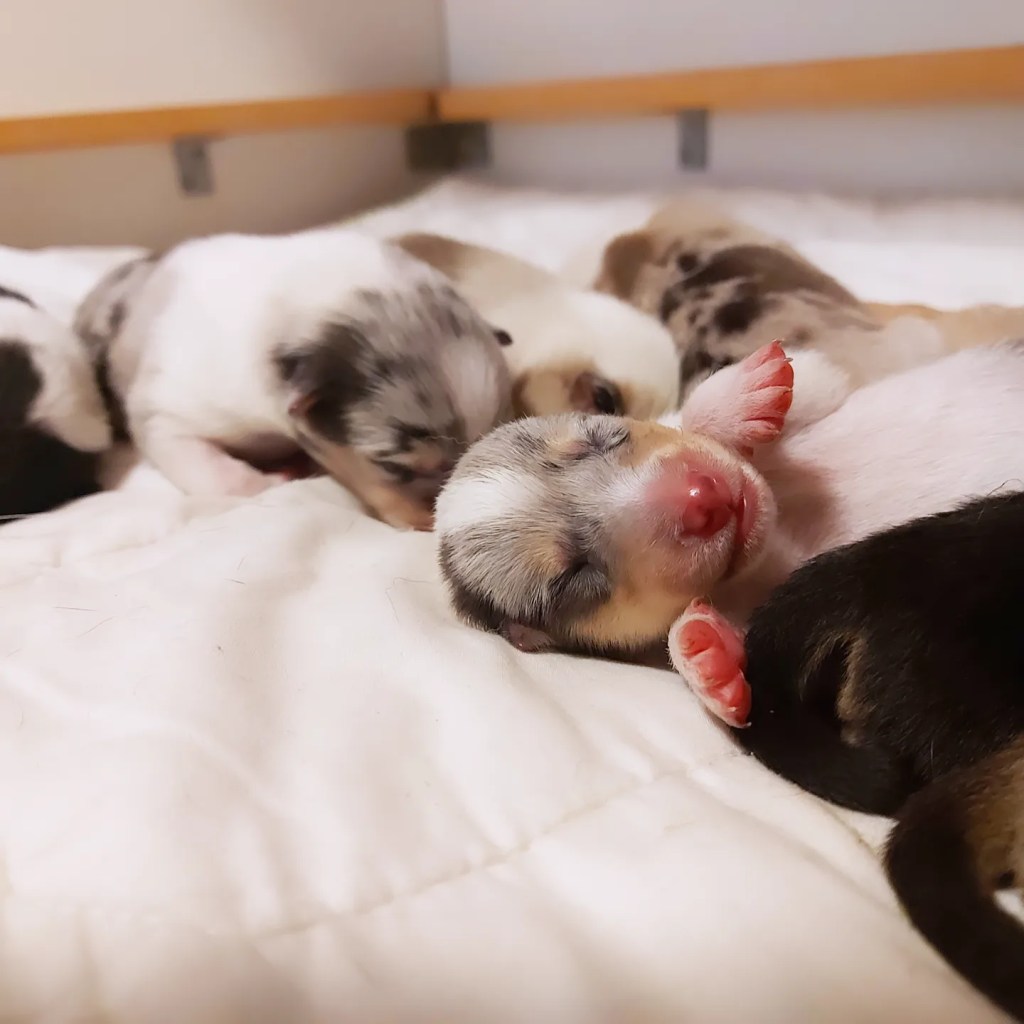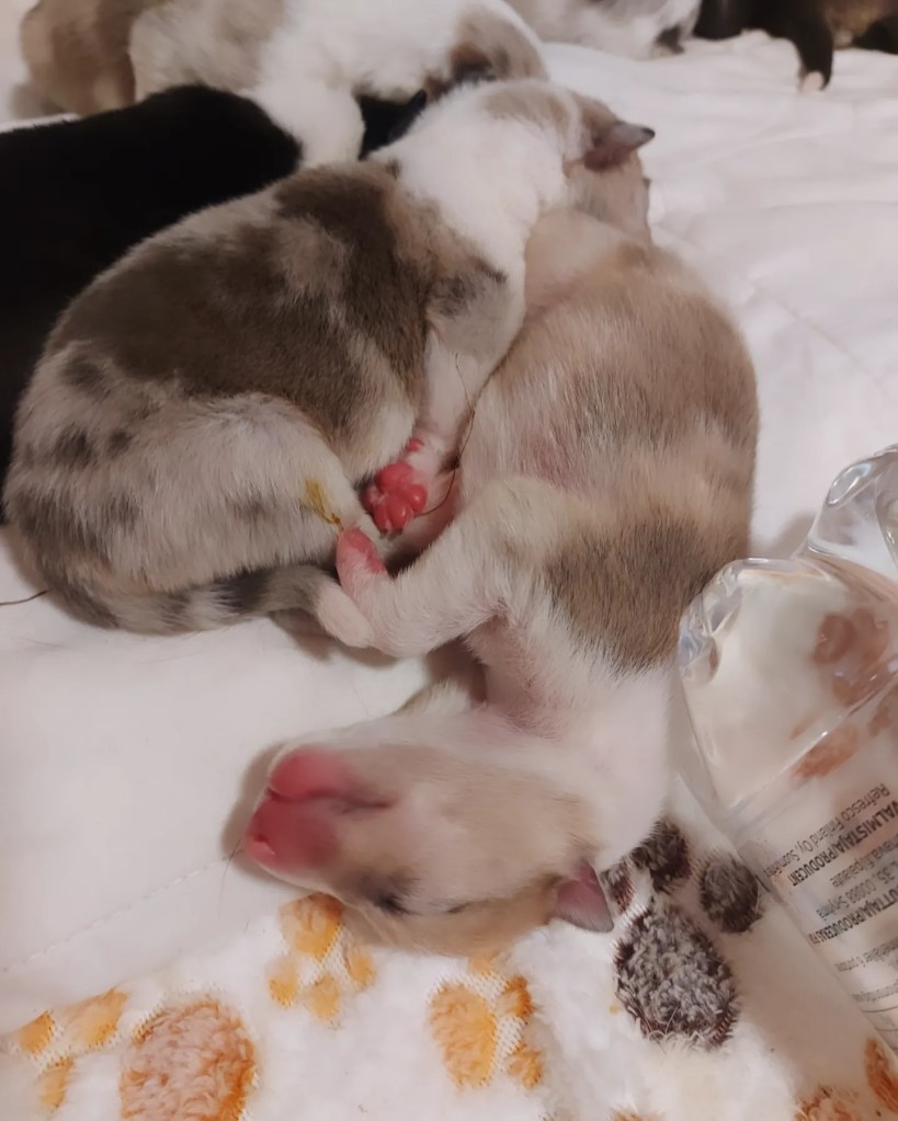 Ilokseni voin ilmoittaa, että meillä on pentuja! Ensimmäiset pennut kymmeneen vuoteen ja Pimu teki sen kunniaksi täydet kymmenen pentua! Pentue syntyi lauantaina 3.8.24 aamuyöstä. Painot pennuilla ovat lähteneet hyvin ylöspäin ja Pimunkin vointi on hyvä. Näin ison pentueen kanssa täytyy tosin olla varautunut kaikkeen ja seuraankin sen ja pentujen vointia. On ihanaa, että minulla on lomaa ja saan olla kotona siihen asti, että pennut täyttävät kolme viikkoa!