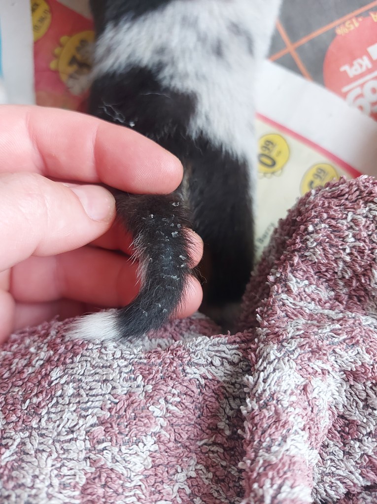 Joillakin pennuilla on hännissä karstan oloista nöyhtää, joka johtunee synnytysnesteistä, joita me Pimun kanssa ei olla osattu putsata tarpeeksi hyvin. Pesen pentuja erityisellä desinfioivalla pesuaineella. Kuitenkin hyvin luonnollinen reaktio ja voi mennä lievissä tapauksissa kuulemma ohi itsestäänkin. Tässä tulee pennuille kuitenkin ilmaiseksi käsittelyä ja märkään aineeseen tutustumista. Ei ole kivaa, sanon! Hirveä huuto kun peppu kastuu lämpimään veteen 🤣 jo yhden pesun jälkeen hilseily on vähentynyt selkeästi.