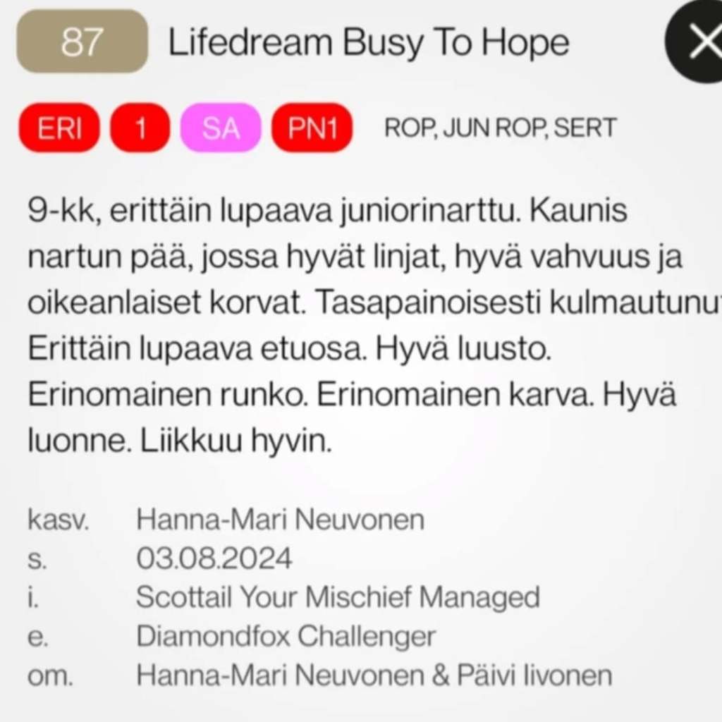 Näyttelyuutisia Oulusta! Irma, Lifedream Busy To Hope, yllätti tänään ekassa virallisessa näyttelyssään ja kovassa seurassa voittaen koko potin! RODUN PARAS ja ryhmässäkin neljäs!! Aikamoista pienelle Junnulle!!