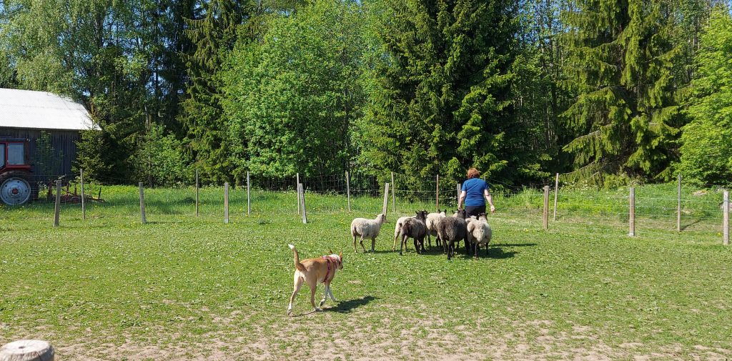 Lunttu toimi ensimmäistä kertaa lampailla ja lähti hienosti jo hakemaan tasapainoa lampailla. Olin tosi iloinen! Luntulle sopivan lajin löytyminen on ollut melko haasteellista, se kun on luonteeltaan rauhallinen ja kooltaan tosi iso tyttö. Nyt tuli kuitenkin tunne, että ehkäpä se voisi seurata isänsä jalan jäljissä paimenkoiraksi! Toki tämä vaatii aika paljon treeniä ja aika näyttää miten se lähtee. Sain Luntulle paimennustaipumustestiin paikan heinäkuulle, joten katsotaan sen jälkeen vakitreenejä!
