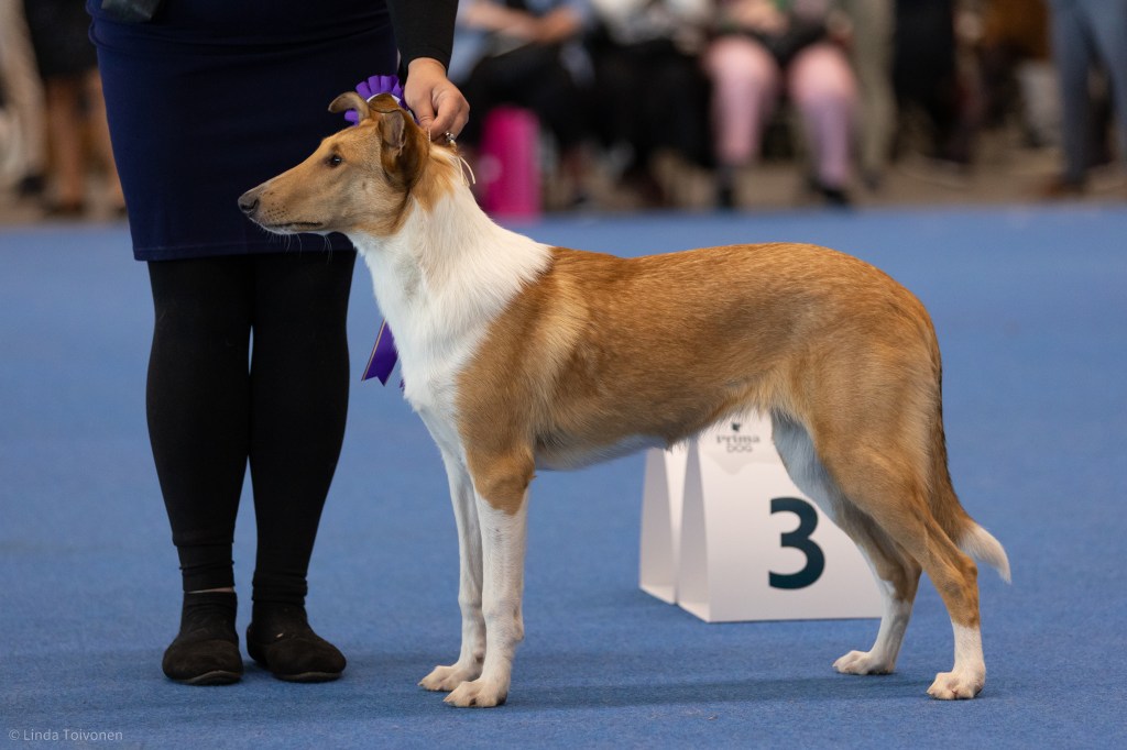 Sire: (C.I.B. Nordic Balt FI NO EE LV LT CZ CMKU CH EE jCH FIW-19 FIJW-19 NordW-19 NordJW-19 WW-21 BaltW-22 HeW-22 FIW-22 Clingstone’s Conspiracy Theory) ”Nacho” (smooth)