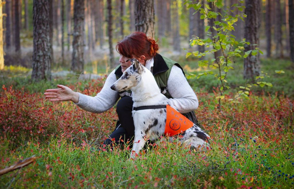 Kiinnostaako henkilöhaku vaikkapa perheen kesken tai arjen aktivointina koirallesi? Kilpailutoiminta on aikaa vievää, koirasi ei omaa PK-poikeuksia tai jokin muu seikka estää vakavan treenaamisen? Olet oikeassa paikassa! Nämä kurssit eivät tähtää kilpailuihin, vaan arjen virikkeellistämiseen ja aktivointiin. Kurssilla saat perustaidot piiloleikkeihin ja vinkkejä siihen, miten harjoituksia voi asteittain vaikeuttaa. Henkilöhaussa eli henkiköetsinnässä koira opetetaan etsimään ihmisiä maastosta. Näihin kursseihin ei ole rotu- tai ikärajoituksia! Teoriaosuus toteutetaan joko meillä tai etänä. Et tarvitse mitään etukäteistaitoja koirallesi, joten sopii myös pennuille! Näissä treeneissä koirasi tottuu kuin huomaamatta erilaisiin ihmisiin ja kehittyy fyysisesti sekä henkisesti. Yhteinen suhteenne ja luoksetulokin vahvistuu. Riistaviettiset koirat voivat alkuun treenata pitkässä liinassa. Letkeän rennoissa treeneissä jokainen koira etsii vuorollaan ja tasonsa mukaisesi. Kaikki ohjaajat pääsevät myös harjoittelemaan piilossa olemista. Henkilöhaku onkin porukkalaji ja sopii parhaiten ihmisiin avoimesti suhtautuville koirille. Kurssit sisältävät myös pääsyn kurssisivustolle missä lisätietoa ja kotona tehtäviä lajia tukevia harjoituksia.