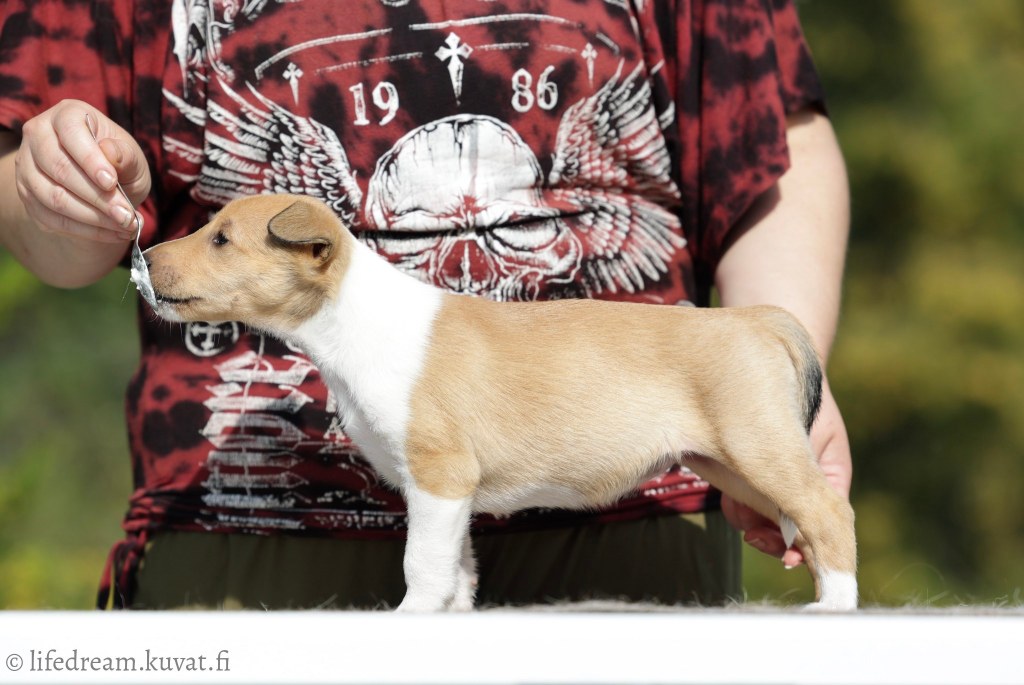 7kk soopeli. Tasapainoisesti kehittynyt, kaunislinjainen, ryhdikäs narttupentu. Lupaava, kaunislinjainen narttumainen pää. Oikein taittuneet korvat, kaunis ilme. Hyvä otsapenger ja kauniisti pyöristynyt kuono. Hyvä purenta ja erinomainen alaleuka. Kaunis ylälinja. Hyvin kehittynyt pitkä rintakehä ja eturinta. Hyvä lantio ja hännän asento. Lihaksikkaat, hyvin kulmautuneet raajat, hyvät käpälät. Hienot liikkeet ikäisekseen, lupaava kokonaisuus.
