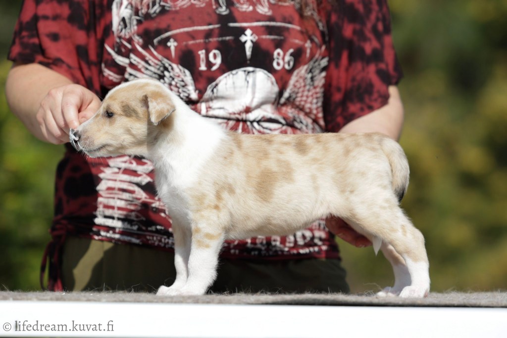 Kippo oli nartuista suurin ja vahvaluustoisin. Hirmuisen ahne jo pentulaatikossa 😀 Kasvaessaan huomasin, ettei se ollut aivan niin fyysinen kuin siskonsa Lunttu, eikä niin itsevarma kuin Irma. Erot olivat kuitenkin melko pieniä. Se oli persoonana vallaton ja meni rohkeasti erilaisissa tilanteissa ja lopulta päätimme sen menevän sijoitukseen. Asiaan vaikutti se, että Riia perheineen oli jo hyvin kiintynyt Kippoon. 🙂 Riian luona Kippo pääsee harrastamaan ainakin hakua ja tottelevaisuuslajeja. Kenties agilityakin sitten joskus. Tärkeintä minulle on se, että Riia on käynyt viikottain asiakastreeneissäni vanhemman nahkansa kanssa, joten tiesin saavani Kipon yhteistyökykyiseen ja varmuudella yhteyttä pitävään kotiin. Muualle en Kippoa olisi varmaan kyennytkään antamaan! Kiitos Riia ja Elina ❤