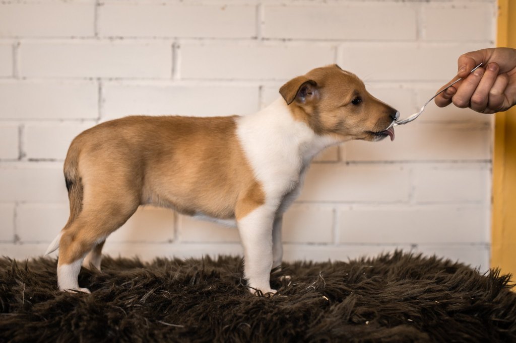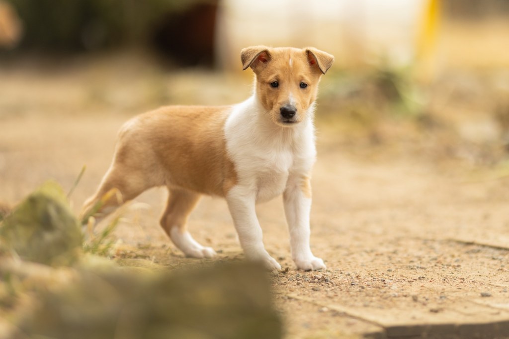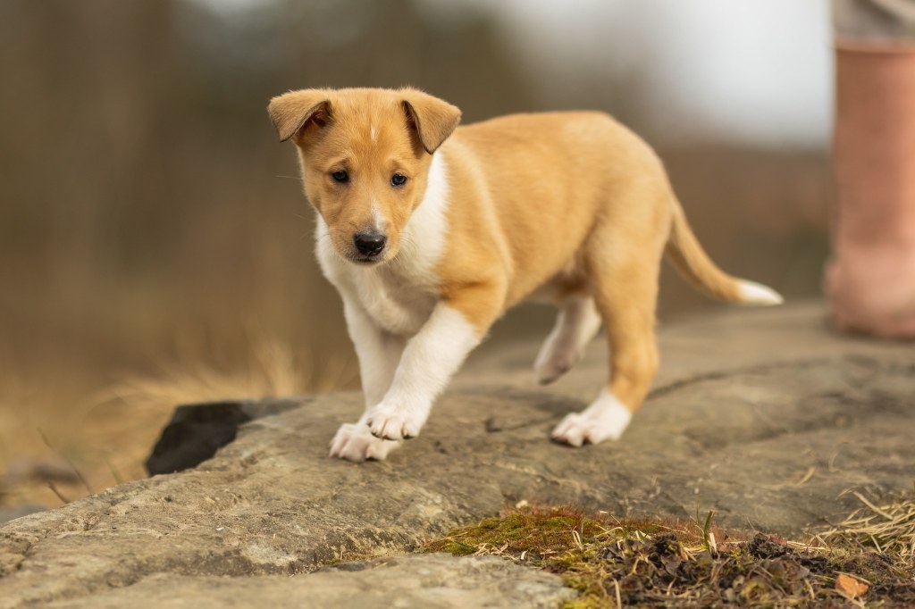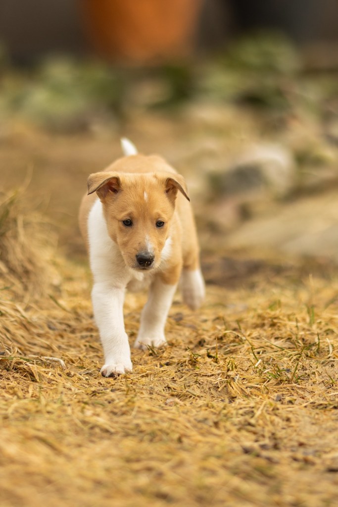 Mimmi jäi kotiin Lotan pentueesta. Sen pentueeseen syntyi viisi urosta ja viimoisena hartaasti odotettu kaunis sileäkarvainen soopelinarttu. Sopivaa sijoituskotia ei ollut tällä kertaa hollilla, mutta halusin kuitenkin katsella pennun luonnetta ennen kuin tein päätöstä kotiin jättämisestä. Mimmi oli alusta asti ahne ja pari ekaa viikkoa pentueen isoin. Ajan myötä ero kaventui ja pojat menivät ohi.