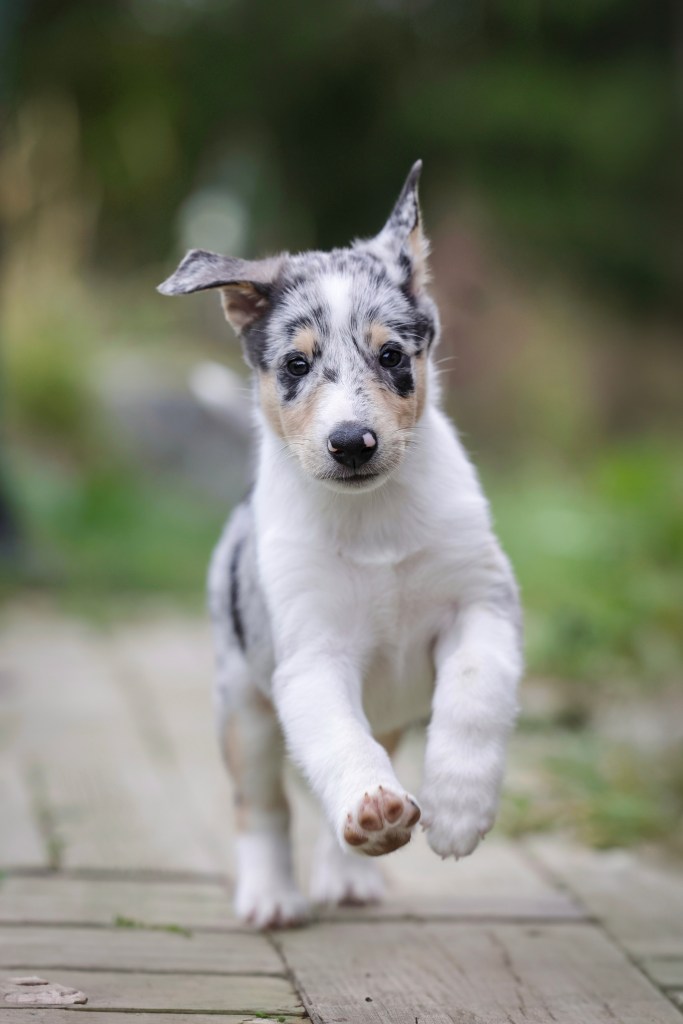 Pentuni syntyvät työhuoneeseen rakentamassani pentulaatikossa. Siellä niillä ja emolla on rauhallinen oma huone, jossa itsekin vietän paljon aikaa työskennellessäni tietokoneella. Noin kahden viikon iässä pennut siirtyvät isoon olohuoneeseen, missä ne tottuvat laumamme ääniin, kissoihin ja vieraileviin ihmisiin. Minulle on tärkeää, että pennuilla on paljon tilaa liikkua ja oleskella, jotta lihaksisto ja kropan käyttö kehittyy alusta saakka. Kasvettuaan pennut saavat valvotusti juoksennella koko puolen hehtaarin aidatulla tontilla ja tutustua tilan muuhun elämään. Kasvatan pennut sillä ajatuksella, että ne saavat yhden uuden kokemuksen päivässä, oli se sitten miten pieni. Pentujen kasvaessa myös kokemukset kasvavat. Pentuni luovutetaan pentuekohtaisesti aikaisintaan 7-8 viikon iässä. Lue lisää pentuajasta kasvattajalla TÄÄLTÄ