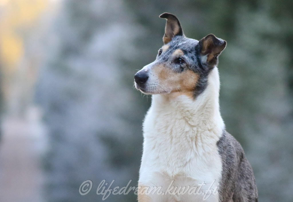 Korvat: 1/3-taittuneet, oikea-asentoiset - Kaula: oikeanpituinen, hyväasentoinen