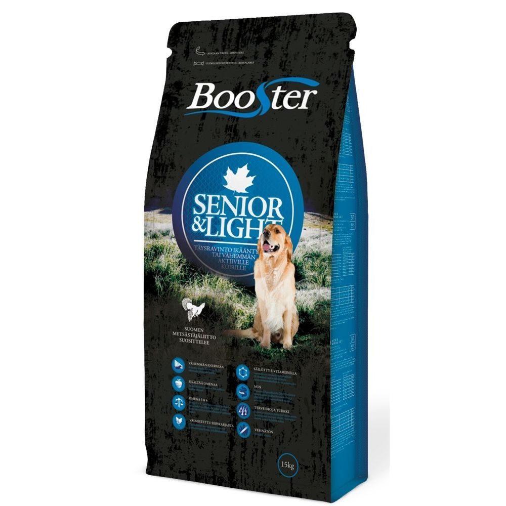 BOOSTER Senior & Light sisältää kaikki iäkkäämmän tai vähemmän aktiivisen koiran tarvitsemat ravintoaineet hyvään terveyteen ja elinvoimaan. Täysravinnon päävalmistusaineena on käytetty korkealaatuista ja hyvin sulavaa kalkkunaa. Hiilihydraatin lähteenä on käytetty perunan, maissin ja kuivattujen omenoiden hyvin sulavaa yhdistelmää. Mannan-oligosakkaridit edistävät terveen suolistoflooran kasvua ja tehostavat siten ruuansulatusta ja suoliston toimintaa. Glukosamiini huolehtii nivelten ja rustojen terveydestä. Biotiini ja erityinen yhdistelmä hivenaineita (mm. sinkki) varmistavat terveen ihon ja turkin Sisältää välttämättömät Omega 3&6 -rasvahapot oikeassa suhteessa.