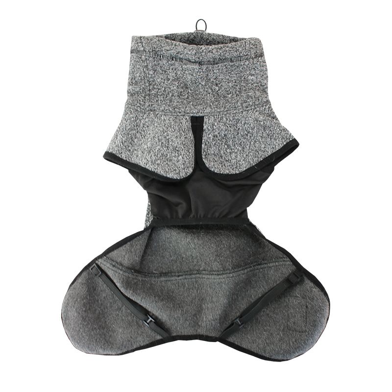 Lupon joustava vatsakappale myötäilee koiran muotoja ja liikettä ja paidan malli on kauttaaltaan vartalonmyötäinen. Taka- ja etuosan helmoissa on kuitenkin pituutta suojaamaan myös olkavarren ja reidet. Etuosan halkio antaa tilaa liikkeelle.