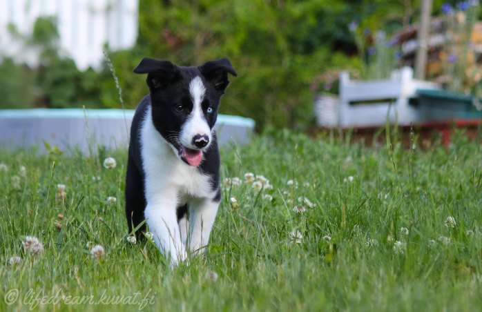 Ventti on reipas bordercollieurospentu, jolla on (kappas kappas) vain reilu viikko ikäeroa omaan Lottaan. Niinpä Ventti ja Lotta leikkivätkin usein yhdessä ja meno on heti alusta asti ollut varsin villiä. Ventti on rauhallisempi kuin saman talouden Vipu, mutta kyllä silläkin naskalihampaita riittää! Ventti kasvattaja omistaa myös Vipun isän, joten Maiju jatkaakin paimennusharrastustaan myös Ventin kanssa. Myös agility kuuluu varmasti lajivalikoimaan. On hauskaa päästä tutustumaan erilaisiin bortsuihin näinkin läheltä, joten Ventistä kuullaan varmasti myös omilla kanavilla!